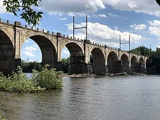 The largest body of water completely within the township is Lake Sylva, a man-made lake that was created in the 1920s when an earthen dam was constructed across the Shabakunk Creek.[39] The 11-acre (4.5 ha) lake is located on the campus of The College of New Jersey.[40] Watercourses in Ewing include the Delaware River along its western boundary and the Shabakunk Creek in the eastern and central portions of the township.