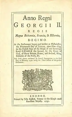| Royal assent | 21 June 1737 |