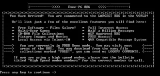 Known primarily for its extensive shareware software archives, the BBS also offered E-mail, message forums, and BBS door games to paying subscribers.[3] As the file archives grew in size, Mahoney created the Hyperscan feature, allowing members to quickly search for files by keyword—a common feature today, but rare at the time. Mahoney became one of the earliest BBS operators to begin charging a fee for access to a BBS. The Exec-PC BBS grew to over 250 lines, with over 300 GB of file storage at its peak in the mid-90s. Callers could connect to the Exec-PC BBS via long distance at no additional charge, or connect to any CompuServe local access number for a per-minute fee.