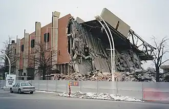Exhibition Stadium was the fourth stadium to be built on its site since 1879.[1] When the original grandstand was lost due to a fire in 1906, it was quickly rebuilt.[1] A second fire destroyed the stadium in April 1946, which led to the city constructing a covered north-side grandstand (known as CNE Grandstand) for CA$3.5 million in 1948.[7][8][9][10][11] This part of the stadium's structure stayed even as the stadium underwent various changes to its configuration over the years until its 1999 closure.