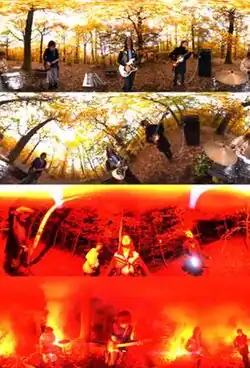 After the first chorus, it cuts to a shot at night-time, with various members of the band walking around the camera and therefore continuing on the other side of the frame. There are also shots of them performing the song in the dimly lit forest, and other shots where they are letting off flares, creating a bright red haze in the dark forest as the band plays.[7] This scene also features an almost hand-held camera effect with the camera zooming in up close and then crossing to other members of the band, bending the image in the process. The outro features heavy psychedelic panning effects, to create a dizzying and disorienting effect. The song finishes and the band put down their instruments and walk away.