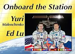 ![]() Expedition 7 mission patch ![]() L-R: Yuri Malenchenko and Ed Lu | |