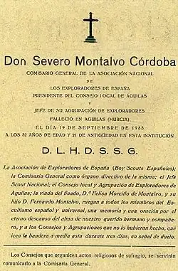 - ^ a b c López Lacárcel, José María (2012). Huellas, cien años de Scouts de España (in Spanish). ASDE. p. 163.