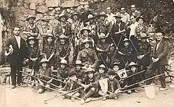 In the mid-1920s, the English engineers who had come to work in the Riotinto Mines gave a very important push for the creation and consolidation of scouting in the Huelva area.[51] The golden age in Minas de Riotinto was under the leadership of Francisco (Frank) Timmis (d. 1931), president of the Local Council, English national and great connoisseur of Baden-Powell's work. In 1924, the Alto Patronato de Exploradores en Minas de Riotinto, under the Schools Department of the Rio Tinto Company Limited, left the organization in the hands of Timmis and in a short time they had about 300 members among the students of the RTCL schools where they learned to march, practiced sports, olympic gymnastics, first aid, and were inculcated with scouting principles.[52] Also in the north, San Sebastián and Bilbao, whose exploradores troops had been active since 1913,[53][54] received help and saw remarkable growth with contributions from Englishmen working in the mines of the Estuary of Bilbao.[51]
