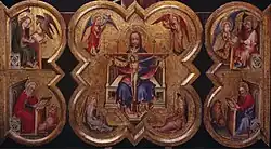 Four-lobed triptych displaying the Holy Trinity and the Evangelists | 2 | Melchior Broederlam / Unknown, Flemish or Franco-Flemish, end of the 14th century | Unknown | 1390 | Gemäldegalerie | [16] |