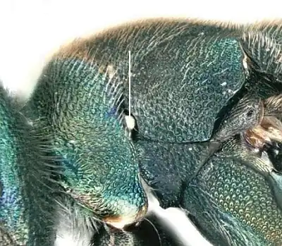 - On the mesosoma, the pronotum is separated from the mesopleuron by the prepectus; usually the pronotum does not extend to the tegula.