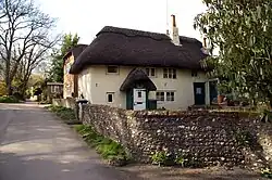 The parish contains numerous archaeological sites including a Mesolithic flint working site, Bronze Age bowl barrows and the Iron Age fort at Old Winchester Hill. There are also Roman and Dark Age sites and the site of the mediaeval village of Lomer. The 13th-century church of St Peter and St Paul was heavily restored in the 19th century.[5] The 1892 restoration (the second of the 19th century) added stained glass windows by Charles Spooner in the style of the Arts and Crafts movement.[6]