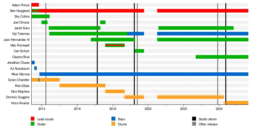 - Ben Hoagland – lead vocals (2013–2019, 2020–present), guitar (2013)[17]
