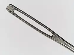 The term "eye of a needle" is used as a metaphor for a very narrow opening. It occurs several times throughout the Talmud. The New Testament quotes Jesus as saying in Luke 18:25 that "it is easier for a camel to go through the eye of a needle than for a rich man to enter the kingdom of God" (Jesus and the rich young man); This is repeated in the same words in Matthew 19:24 and Mark 10:25. It also appears in the Qur'an 7:40, "Indeed, those who deny Our verses and are arrogant toward them – the gates of Heaven will not be opened for them, nor will they enter Paradise until a camel enters into the eye of a needle. And thus do We recompense the criminals."[1]