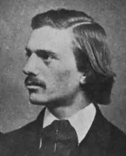 Shortly after his graduation, he enlisted as a private in the 24th Regiment Massachusetts Volunteer Infantry, and was soon promoted to the rank of corporal. His regiment participated in the Battle of New Bern, and was stationed near that community for nine months. During this time, he received news of his brother's death at Antietam.[3] He was then commissioned as second lieutenant of the 55th Massachusetts Volunteers on October 15, 1863, and subsequently commissioned as a captain with the 59th Massachusetts Volunteers.[4] While commanding the 55th Massachusetts during the Battle of the Wilderness, he was wounded in the left arm and hand, and ultimately lost the little finger on that hand.[3]