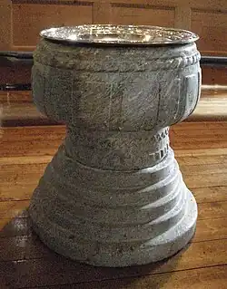 Next to the church stands the Fåberg stone, a runestone believed to have been one of three monoliths standing near the church.[3]