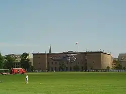 The southern part of Fælledparken was sometimes used by rescue helicopters from the Danish Air Force when transporting patients to Rigshospitalet. This practice was abandoned in the year 2006 with the construction of a helicopter platform on the roof of Rigshospitalet.[1] Archived 2007-03-11 at the Wayback Machine