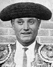 Almagro was born on 11 June 1907 in Torrijos, a small town in the Province of Toledo in central Spain.[3] His beginnings were quite humble. His family ran a fruit stand in the street in Torrijos now known as Avenida de la Estación. Unlike many boys who dreamt of becoming bullfighters, though, his aspiration to do just this only began rather late. He nonetheless honed his bullfighting skills at the local capeas (somewhat less than professional-level rural bullfighting events), and was already 25 years old when he first presented himself at Madrid as a novillero (novice bullfighter who fights yearling bulls). This took place on 31 July 1932, but the venue where it happened is a point of some confusion, with some sources saying that the event was held at Las Ventas, and others saying that it unfolded at the old bullring on the Aragón Highway.[3][1] Others still do not specify which bullring was used.[4][2] Young bulls were supplied by the Emilio Bueno ranch, and Almagro found himself sharing billing with Antonio Labrador "Pinturas" and Natalio Sacristán Fuentes.[4][5]