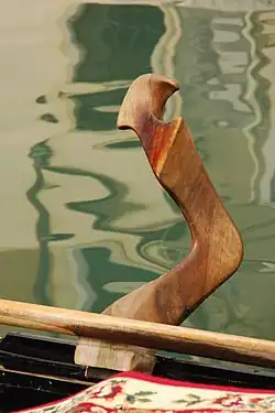 Fórcola (Venetian dialect, plural Fórcole) is the typical Venetian rowlock providing a variety of fulcrum positions, each having its own effect on the rower's oar.[1]