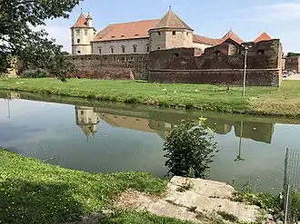 In 1526, Ștefan Mailat consolidated the citadel, doubling the thickness of the walls. In 1541, the Ottomans attacked the fortress and captured Mailat, who died in captivity at Yedikule Fortress in Istanbul.[3] Gáspár Bekes, owner of the citadel between 1567 and 1573, constructed the moat around the fortress, the excavated earth being used to strengthen the inner part of the walls. During the time of Stephen VIII Báthory (voivode of Transylvania from 1571 to 1586) and Balthasar Báthory (lord of the fortress from 1588 to 1594), the first bastion was constructed in the south-eastern corner of the outer defensive ring.[2] In 1599, Michael the Brave occupied Făgăraș Citadel and sheltered there his family and the royal treasure.[3] In the 17th century, Prince Gabriel Bethlen gave it priority over Alba Iulia in modernizing the fortifications, while Michael I Apafi transformed it, due to its strengthened position, into a princely residence.[2] It functioned as a garrison from 1689, preserving its military function after the union of Transylvania with Romania.[4]