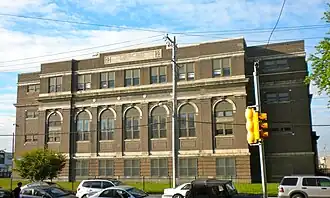 F. Amadee Bregy School is a historic school located in the Marconi Plaza neighborhood of Philadelphia, Pennsylvania. It is part of the School District of Philadelphia. The building was designed by Irwin T. Catharine and built in 1923–1924. It is a three-story, nine-bay, brick building on a raised basement in the Colonial Revival-style. It features large stone arched surrounds, double stone cornice, projecting entrance pavilion, and a brick parapet.[2]