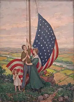 Church participated in the war effort, enlisting in the New York National Guard. He achieved the rank of Second Lieutenant, Ninth Coast Artillery Corps (CAC).[30] Like many artists, he painted camouflage and also had involvement with the United States Food Administration (USFA).