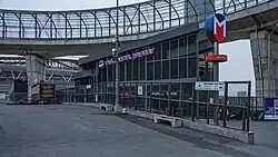 The F3 route runs in southern Sarıyer, just west of Maslak. The large majority of the route is elevated with a concrete viaduct and consists of two stations. The northwest terminus of the F3, Vadistanbul station, is located within a glass Spheroid structure that connects to the 2nd floor of the Vadistanbul Shopping Center.[3] The southeast terminus, Seyrantepe station, is located underground on the northern side of the O-2 expressway. A tunnel underneath the expressway connects to the M2 station.[4] The route is mostly single track, except for a short 147 m (482 ft) long double-track section in the middle allowing trains to pass one another. The total construction cost of the line was € 15 million.[4]