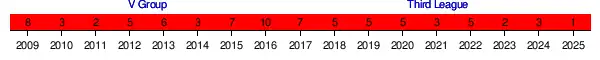 | 2008–09 | Third League | 3 | 36 | 18 | 4 | 14 | 52 | 47 | +5 | 58 | 8th | DNQ | ||||