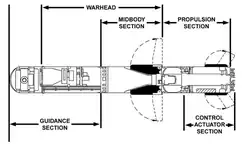 The seeker assembly is encased in a dome that is transparent to long-wave infrared radiation. The IR radiation passes through the dome and then through lenses that focus the energy. The IR energy is reflected by mirrors on to the FPA. The seeker is a two-dimensional staring FPA of 64×64 MerCad (HgCdTe) detector elements.[33] The FPA processes the signals from the detectors and relays a signal to the missile's tracker.
