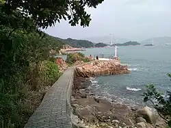 Fa Peng (Chinese: 花坪) is a village located on the Tsing Chau Tsai Peninsula of Lantau Island, in the Tsuen Wan District of Hong Kong. The village is below Fa Peng Teng (Fa Peng Peak), in Chinese meaning flower flask because of the rock formation that’s shaped like a flower flask.[1] Climbing this via the Fa Peng Trail provides one of the best views of the Lantau Link bridges.[2]