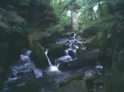 In April 1976, an area in and surrounding Healey Dell, at the south end of the valley became legally designated as a statutory local nature reserve. A prominent feature of Healey Dell is the railway viaduct which stands 150 feet above the River Spodden, which rises in the Lancashire Pennine hills above Whitworth and proceeds south through Healey Dell and on to Rochdale, where it merges with the River Roch.[17]