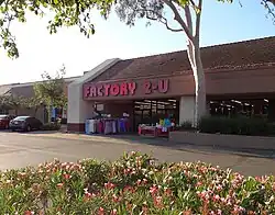 The chain was formerly operated by Factory 2-U Stores, Inc. [2][3] which was headquartered in San Diego, California. The company was known for selling excess apparel and closeout merchandise from brands such as Converse, Gap, Levi's, and Polo Sport.[4]