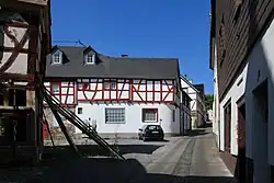 One of the old houses in Fahr still standing today and facing the river is the Rheinisches Haus (Rhenish house) built in 1584 as a Ferryman's house, later also used as a changing station for towpath horses, and also as Gasthaus. The building has been restored by its current owner.[3]
