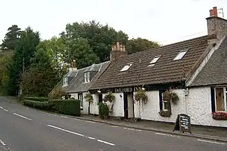 One unusual feature of the village is a range of Almshouses that were constructed using funds from a bequest and had conditions of character, situation and age attached as recorded in 1846 :- "A range of almshouses was erected and endowed, by a bequest of the late Alexander Cooper, Esq., of Smithston, at Failford, near the junction of the Ayr and Fail rivers, for eight persons, who have each a weekly allowance and an allotment of garden ground. The hospital is spacious and handsome, and is designed for inhabitants of Tarbolton and Mauchline, in indigent circumstances, upwards of forty years of age, and who have never solicited alms".[8]