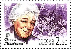 Faina Georgiyevna Ranevskaya (Russian: Фаина Георгиевна Раневская, born Faina Girschevna Feldman, 27 August [O.S. 15 August] 1896 — 19 July 1984) was a Soviet actress. She is recognized as one of the greatest Soviet actresses in both tragedy and comedy.[1] She was also famous for her aphorisms.[2]