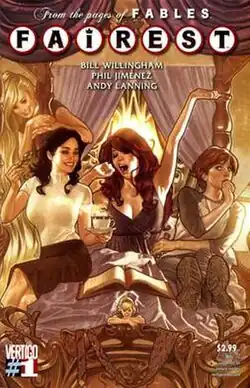 Fairest is an American monthly comic series created by Bill Willingham, published by DC's Vertigo. A spin-off of Fables, Fairest details the adventures and stories of Fabletown's female citizens and heroines. Fairest is described by Willingham as a series of miniseries, with each arc telling self-contained stories.[1][2][3]