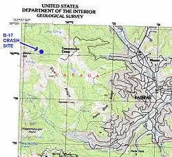 Early on the morning of May 16, 1946, a U.S. Army B-17 Flying Fortress aircraft crashed into White Hill (a.k.a. "White's Hill") near Fairfax, California. Two men were killed and six seriously injured.[1] There were reports that the B-17 was carrying nuclear weapons materials for the Operation Crossroads tests at Bikini atoll, but these reports were not confirmed.[2] However, due to the behavior and activities of the military authorities at the crash site and the reports of several credible witnesses, including several of the crewmembers, questions about the plane's cargo remain.