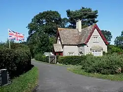 The grounds included a short canal which was separated from the house by the main road from Stogursey to Stringston.[14] In the late 18th century and early 19th century, the road was diverted by Sir John Acland, as part of extending the park to the south.[15][16] The east and south lodges were rebuilt in the 1830s.[17] There are also a stable block and dovecote both of which date from the late 18th century.[2]