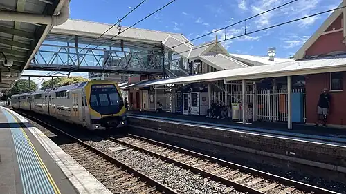 Fairfield railway station is a heritage-listed railway station located on the Old Main South line, serving the Sydney suburb of Fairfield. It is served by Sydney Trains' T2 Leppington & Inner West and T5 Cumberland line services. It was designed and built by NSW Government Railways from 1856 to 1891. It is also known as Fairfield Railway Station group. The property was added to the New South Wales State Heritage Register on 2 April 1999.[3]