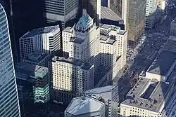 The hotel building forms a part of the Union Station Heritage Conservation District, a historic district surrounding Union Station. The creation of the historic district was through the Ontario Heritage Act, and was enacted by Toronto City Council in July 2006.[5] Given its overlap with the Financial District, the historic district is an eclectic collection of buildings, with structures dating from the 1850s to the present day. Historic buildings within this district include the Dominion Public Building, and The Toronto Club.[5]