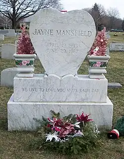 ![]() Jayne Mansfield's tombstone in Fairview Cemetery | |