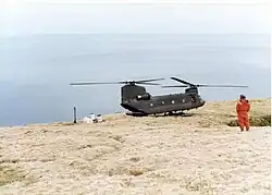 The device, developed by Martin Marietta, was the first commercially developed instrument of its kind deployed for unattended field use by the U.S. government. This use was cited in 1978 congressional hearings on potential uses for nuclear waste.[22] In 1981 two additional RTGs were added. All three RTGs were removed from the rock in 1995[23] in a joint Army/Navy operation with Chinook helicopters from B Company, 4th Battalion, 123rd Aviation Regiment, the "Sugar Bears"[26] of Fort Wainwright, AK.[27] The three RTGs were transported from Fort Wainwright, AK to the Richland Consolidation Facility at Hanford Nuclear Reservation in Washington state for disposal.[23][28][29][30]