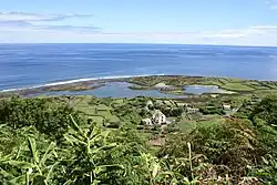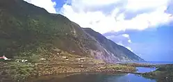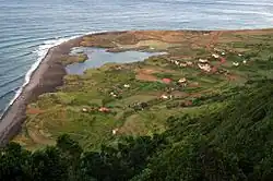 The size of the fajã has been attributed to the 9 July 1757 earthquake, considered the most violent tectonic quake that occurred in the Azores.[2][3][4] This seismic event was characterized by violent movements of land (landslides, collapses and rockfalls) that were responsible for the creation of several fajãs on the island, such as the Fajã of Ponta Nova, and the growth of pre-existing fajãs.[2] The event, and associated aftershocks, were responsible for the destruction in Fajã dos Vimes, Fajã do São João and Fajã dos Cúberes, where "it moved the land, from the centre above, with luck, in them, there is no sign of buildings."[5] The earthquake produced major damage in Calheta and caused the death of 1034 on the island of São Jorge.[5][6]