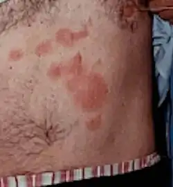On May 23, Michalak was visited by J.B. Thompson, a member of UFO group APRO.[4] Thompson photographed Michalak's burns, which medical records described as "several round and irregular shaped burns the size of a silver dollar". While Michalak claimed the burns were a grid caused by UFO exhaust from evenly spaced holes, the Thompson photo shows irregularly shaped blotchy burns.