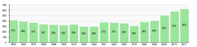 As of 2017, children and teenagers (0–19 years old) make up 18.5% of the population, while adults (20–64 years old) are 54.7% of the population and seniors (over 64 years old) make up 26.8%.[6] In 2015 there were 244 single residents, 326 people who were married or in a civil partnership, 18 widows or widowers and 26 divorced residents.[11]