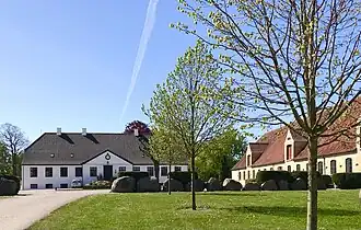 The main building is from 1775 and was built with brick from Antvorskov Abbey. The rather unassuming, single-storey building is 11 bays long and has a hipped red tile roof. The facade features a median risalit tipped by a triangular pediment.[4]