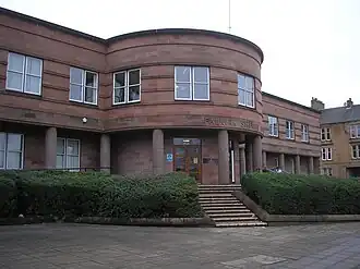 Until the late 1980s, hearings took place at the Old Sheriff Court in Hope Street.[1][2][3] However, as the number of court cases in Falkirk grew, it became necessary to commission a modern courthouse for criminal matters. The site the court officials selected was open land on the south side of Main Street in Camelon.[4]