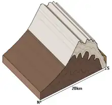 About 400 million years ago the land that became the Falkland Islands and Antarctica's Ellsworth Mountains, which had been part of Gondwana, broke from what is now Africa and drifted westwards relative to Africa.[1] During the mid-Jurassic period[2] (about 170 million years ago) the land fragment that was to become East Falkland and the land fragment that was to become West Falkland rotated about 120° relative to each other. As a result, the fold lines in West Falkland run almost south-west to north-east, parallel to the Sound. Those in the northern part of East Falkland run east-west, forming the eastern part of northern entrance to the Sound and bordering on the northern banks of San Carlos Water. The boundary between these two land fragments, the Falkland Sound Fault, lies close to and parallel with the western shore of the Sound. Lafonia (the southern half of East Falkland), which is a much newer formation, has no folds.