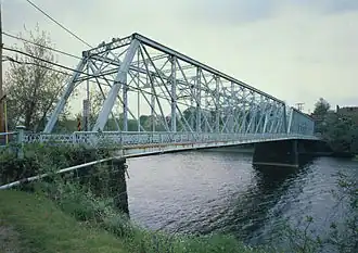 The Fallston Bridge is a historic structure that crosses the Beaver River between the boroughs of New Brighton, and Fallston, Pennsylvania. The bridge was opened in 1884 to replace a tolled, wooden 1836 structure that was destroyed during a major flood. Crossing under a low-clearance railroad underpass on one side of the river and featuring a sharp approach ramp on the opposite shore, the dated structure is insufficiently designed for modern traffic and is often hazardous during rainy conditions. Although it was rehabilitated in 2003, the bridge still received only a 2 out of 100 rated from the Department of Transportation in terms of its structural status.