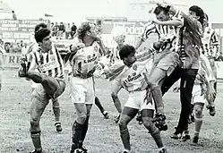 Nea Salamina lineup: Michael Sophocles "Blakkis", Kalafatis Fokkis, Takis Kkafas, Vasoudi, Andreas Elias "Andrellis", Anthony Vrachimis "Tzioumpis", George Avetisian "Tziortzis", Kostakis, Sotiris Photiou "Tirimo", Mitsios Deryneiotis
