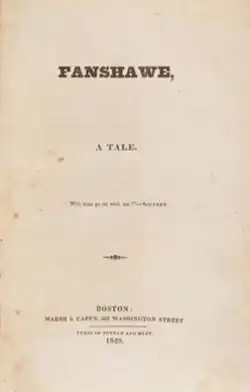 Hawthorne had worked on a novel as early as his time as an undergraduate at Bowdoin College. Fanshawe, his first published novel, may or may not have been that book.[1] Fanshawe: A Tale appeared anonymously in October 1828 from the Boston publishers Marsh and Capen. Its printing was paid for at the author's own expense, costing him $100.[2] The book was based on Hawthorne's experiences as a Bowdoin College student in the early 1820s.