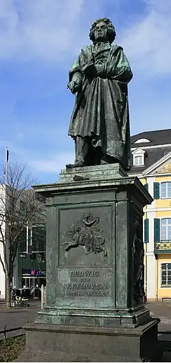 The piece has its origin in early 1836, when Schumann composed a piece entitled Ruines expressing his distress at being parted from his beloved Clara Wieck (later to become his wife). This later became the first movement of the Fantasy.[1] Later that year, he wrote two more movements to create a work intended as a contribution to the appeal for funds to erect a monument to Beethoven in his birthplace, Bonn. Schumann offered the work to the publisher Kirstner, suggesting that 100 presentation copies could be sold to raise money for the monument. Other contributions to the Beethoven monument fund included Mendelssohn's Variations sérieuses.[2]