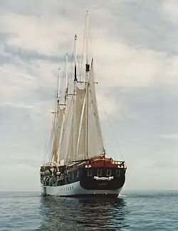 Fantome was a 679-ton staysail schooner. She was completed in 1927 by the Duke of Westminster. She was purchased by Windjammer Barefoot Cruises in 1969, and became the flagship of their fleet, offering cruises in the Caribbean and the Bay of Honduras.