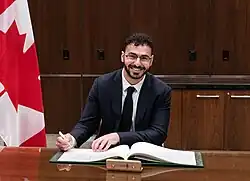 Fares Al Soud MP is a Canadian politician from the Liberal Party of Canada.[1] He was elected Member of Parliament for Mississauga Centre in the 2025 Canadian federal election.[2] Al Soud holds a bachelor of science degree from the University of Toronto and is originally from Montreal.[3] Alongside Tatiana Auguste, Amandeep Sodhi, and Jake Sawatzky, Al Soud is one of the first four Canadian MPs born in the 21st century.[4] Al Soud is of Palestinian descent.
