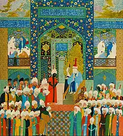 The Farewell Sermon (Arabic: خطبة الوداع, Khuṭbatu l-Wadāʿ ) also known as Muhammad's Final Sermon or the Last Sermon, is a religious speech, delivered by the Islamic prophet Muhammad on Friday the 9th of Dhu al-Hijjah, 10 AH (6 March 632[1]) in the Uranah valley of Mount Arafat, during the Islamic pilgrimage of Hajj. Muhammad al-Bukhari refers to the sermon and quotes part of it in his Sahih al-Bukhari.[2][3][4] Part of it is also present in Sahih Muslim[5] and Sunan Abu Dawood.[6] Verse 5:3, "Today I have perfected for you your religion," is believed to have been recited during the address as the capstone verse of the Quran.[7] Various versions of the sermon have been published, including several English translations. The sermon consists of a series of general exhortations for Muslims to follow the teachings that Allah had set forth in the Quran and Muhammad in his Sunnah.